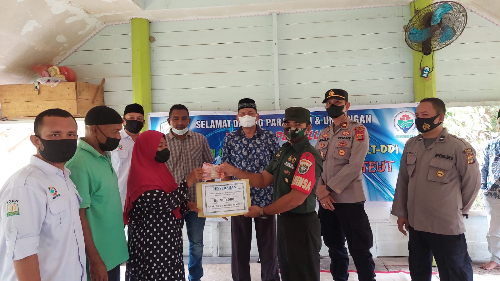 LINTASKINI.CO.ID – Aceh Timur – Bertempat di Balai Desa Seuneubok Punteut, Kecamatan Peudawa telah diselenggarakan Sosialisasi Protokol Kesehatan (Prokes) Covid-19 dan Pembagian Bantuan langsung Tunai Dana Gampong (BTLDG) yang dihadiri oleh unsur Muspika Kecamatan setempat, Kamis (28/04/22).