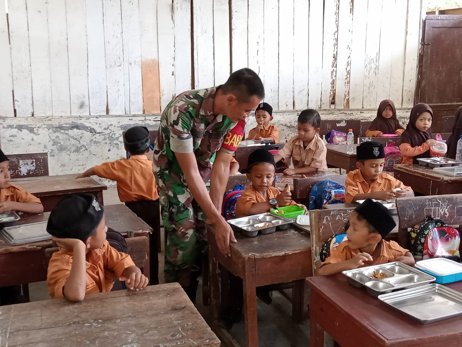 “Generasi Sehat, Bangsa Kuat: Babinsa Peureulak Barat Dampingi Pembagian Makanan Bergizi”