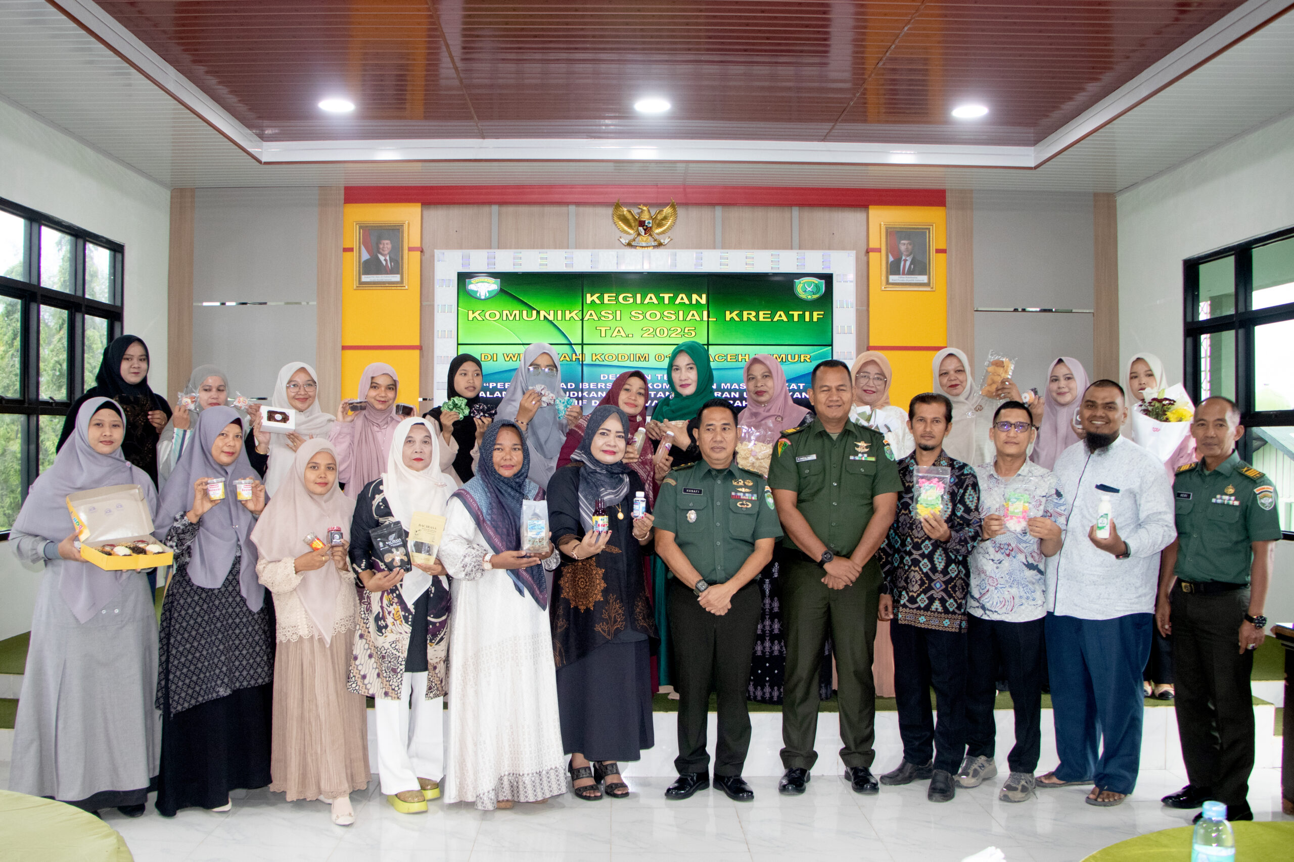 Langsa – Semangat kebersamaan dan kolaborasi antara TNI dan masyarakat kembali terlihat dalam kegiatan Komunikasi Sosial (Komsos) Kreatif yang diselenggarakan oleh Kodim 0104/Aceh Timur, Kamis (23/10/2025). Bertempat di Aula Makodim 0104/Atim, Gp. Payabujok Seuleumak, Kec. Langsa Baro, Kota Langsa.
